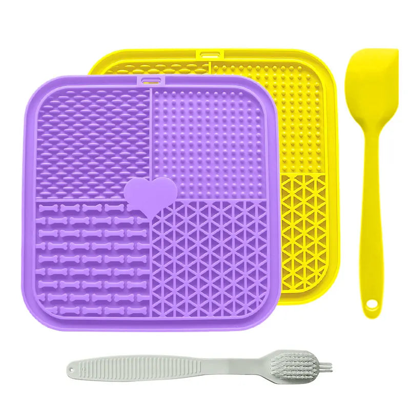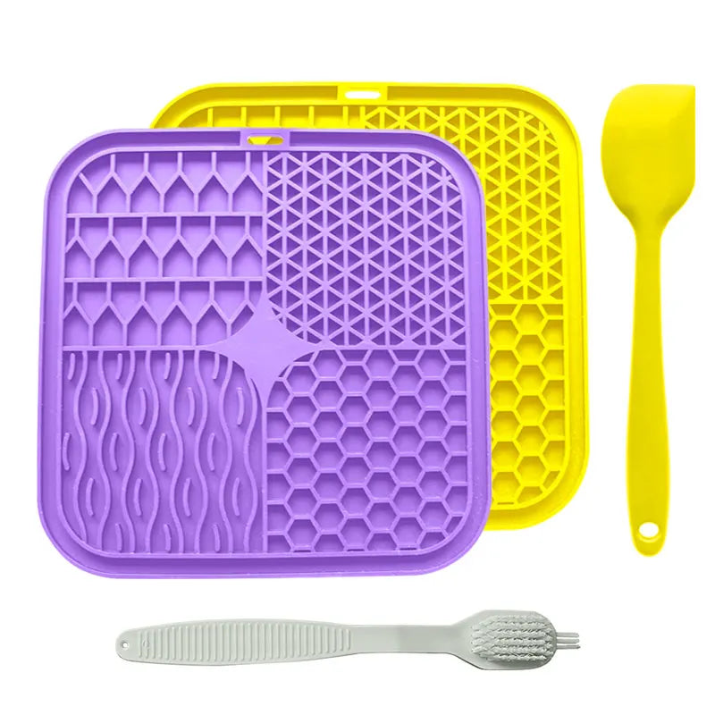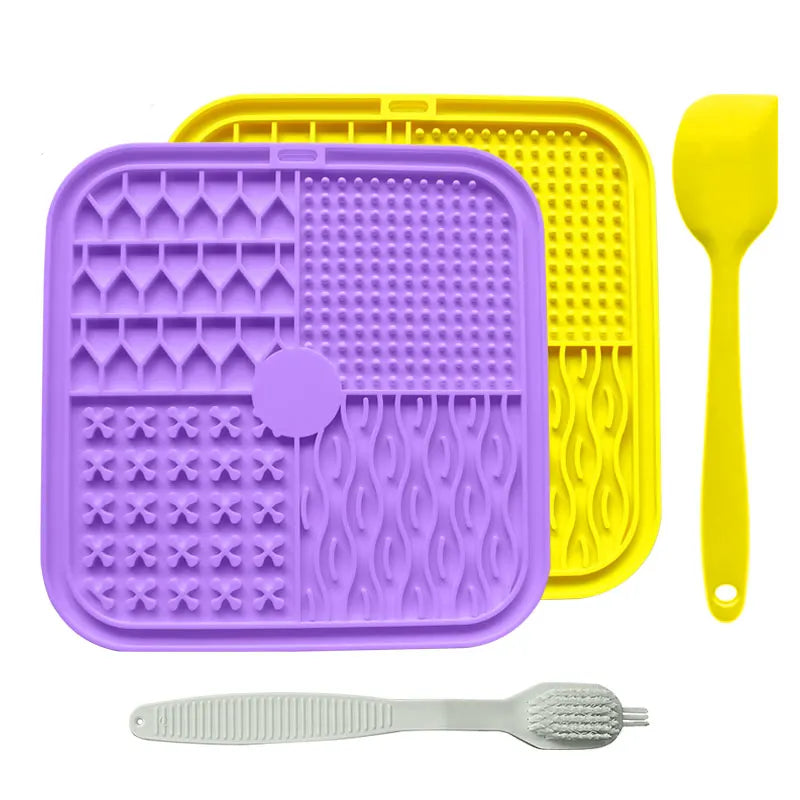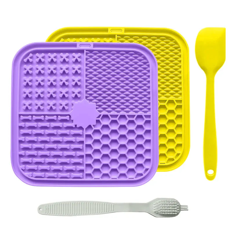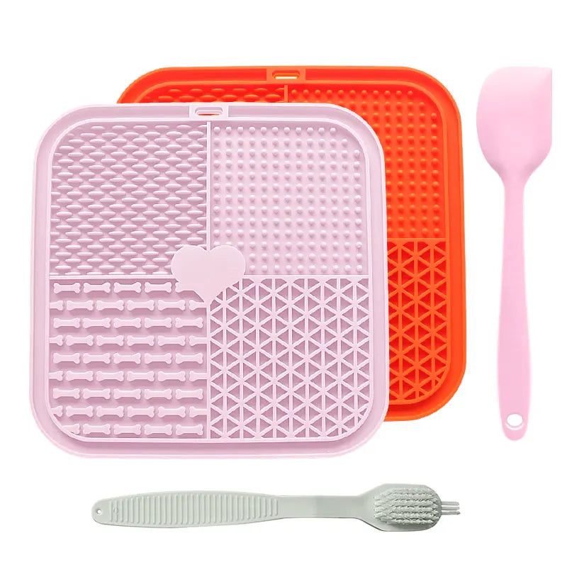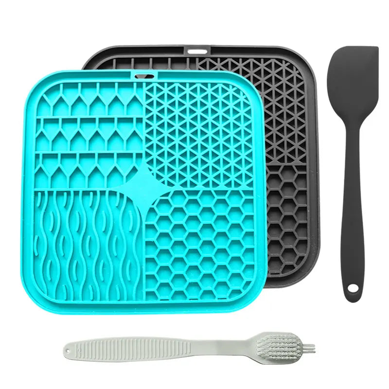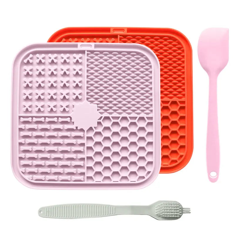 Keep your dog engaged and calm with this Combination Pet Licking Pad. Featuring a suction base for stability, it can be used as a slow feeder, bath distraction, or treat dispenser. Perfect for reducing anxiety, promoting healthy chewing, and making mealtime or grooming more enjoyable.